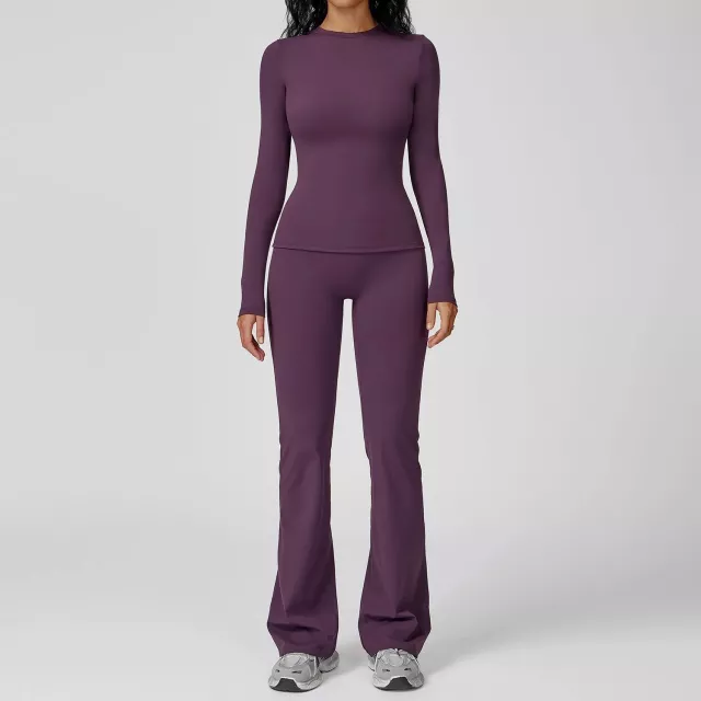 Take your fitness routine to the next level with this 2-piece women’s tracksuit yoga set. Designed for performance, style, and comfort, this outfit includes a breathable long-sleeve sport shirt and high-stretch leggings. The fabric feels soft on the skin, provides excellent flexibility, and allows you to move freely whether you’re hitting the gym, running, practicing yoga, or enjoying a pilates session. With its sleek round-neck design and flattering fit, you’ll look just as good as you feel.