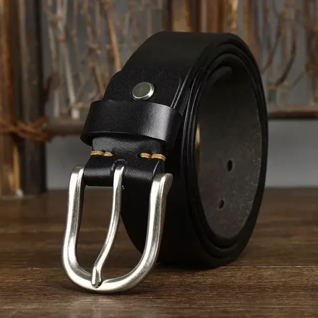 Crafted from premium cowhide leather, this belt ensures durability and longevity. The sturdy construction features a solid pin buckle designed for easy adjustments, allowing you to find the perfect fit. The sturdy width of 3.8 cm not only offers excellent support but also adds a rugged charm that complements your jeans or trousers perfectly. Its classic solid pattern showcases a timeless look, making it an essential part of any wardrobe.