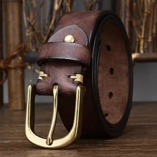 3.8CM Vintage Genuine Leather Belt with Copper Buckle for Men