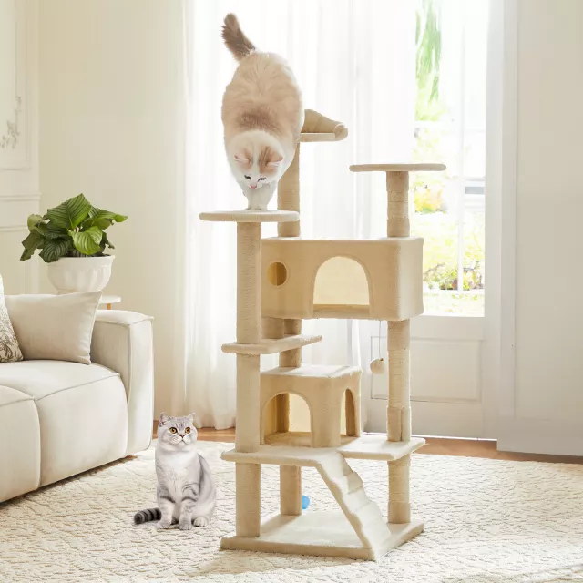 54in Tall Multi-Level Cat Tree Tower with Sisal Scratching Posts & Cozy Condos
