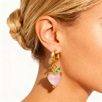 Opal Fruit Heart Earrings for Women – 18K Gold Plated Stainless Steel Pink Heart Stud Earrings