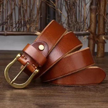 Classic Retro Copper Buckle Genuine Leather Men’s Belt – Thick Full-Grain Cowhide