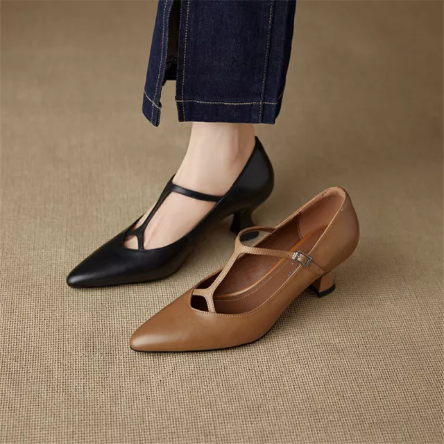 Step into timeless sophistication with these Genuine Leather Mary Jane Pumps. Designed with a pointed toe and a classic mid heel, these shoes bring a perfect balance of elegance and comfort to your wardrobe. The concise design makes them versatile enough to wear from the office to an evening out, while the premium leather finish adds a touch of luxury to every step.