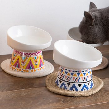 Elevated Ceramic Cat Bowl with Stand – Anti-Spill Slanted Design