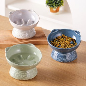 Ceramic Elevated Slow Feeder Pet Bowl with Anti-Slip Base and Neck Protection