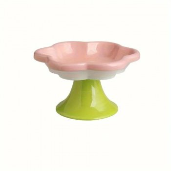 Elevated Ceramic Cat Bowl with Flower Design and Stand