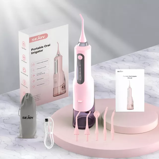 This oral irrigator makes dental care effortless. With an upgraded 270ml water tank, you can enjoy longer cleaning sessions without stopping to refill. The USB rechargeable battery delivers up to 20 days of use from a single 4-hour charge, making it ideal for both home and travel. The IPX7 waterproof design allows safe use in the shower, while the lightweight build makes it easy to carry anywhere. Five interchangeable nozzles ensure that the whole family can benefit, and the ergonomic handle keeps things comfortable during use.