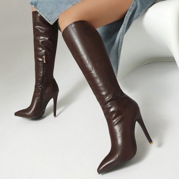 Sexy Women’s Knee-High Boots with Pointed Toe and 3.3 Inch Block Heels