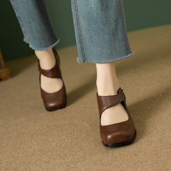 Elegant Square Toe Mary Jane Pumps with Chunky 2.1in Heels Plus Size